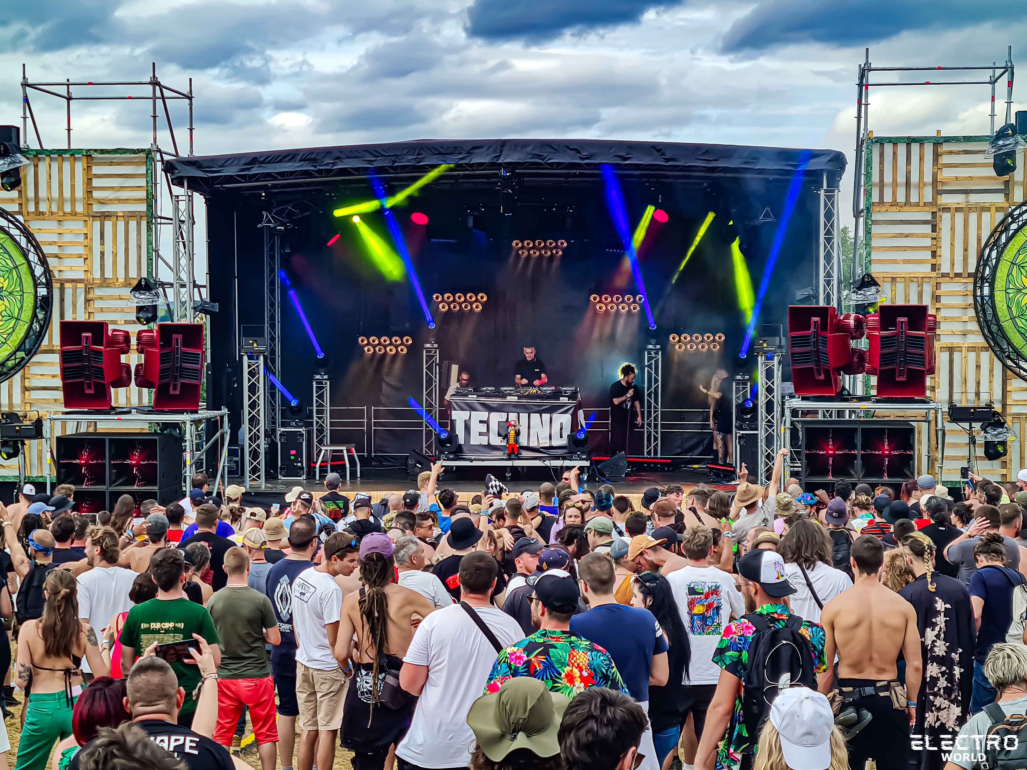 Pour la deuxième scène hostée par Freestyle Records, la scénographie était bien plus simple pour une ambiance plus underground et plus dark à la nuit tombée. Une déco à base de palette et de décor psychédélique, un lighshow bien plus intéressant que l'an passé même si nos remarques de la Mainstage peuvent également s'y appliquer. Petite nouveauté et qui nous a fait très plaisir : l'ajout de 4 lances flammes sur le dessus de la scène et qui fait son petit effet même si la pyro est envoyé au mauvais moment. Cependant, le gros point fort de cette scène est son soundstystem de 150kW de Void, avec ses enceintes en forme de moteur triphasé. Le son tapait vraiment très fort sur les kicks Techno, Hardtek et Tekno de cette programmation alternative réunissant de jeunes talents comme des artistes internationaux déjà bien expérimentés.